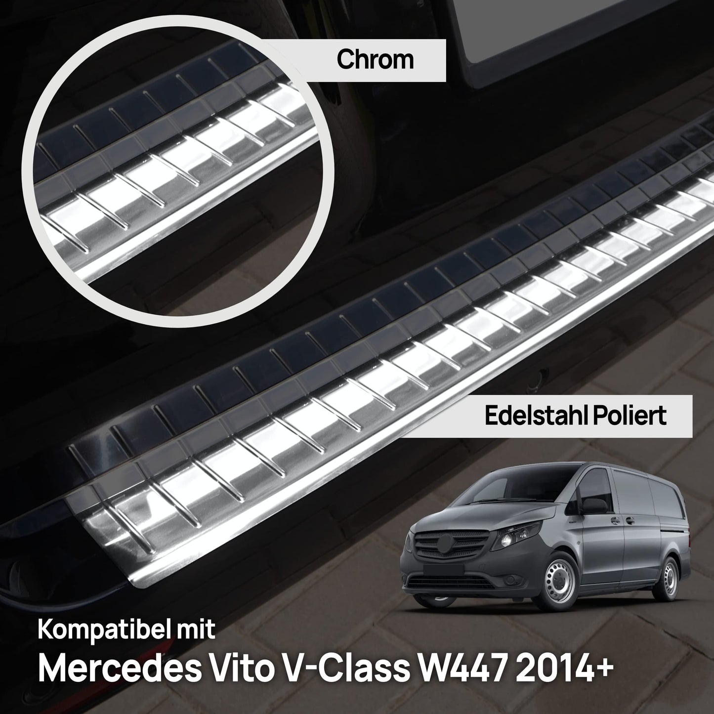 - ✅ [AUTOMODELL] Ladekantenschutz, Heckschutzleiste Kompatibel mit Mercedes Vito V-class W447 2014+; Edelstahl Poliert / Chrom; Korrosionsfest; Montagebereit; Aufmerksamkeit! Nicht geeignet für Version mit AMG-Paket