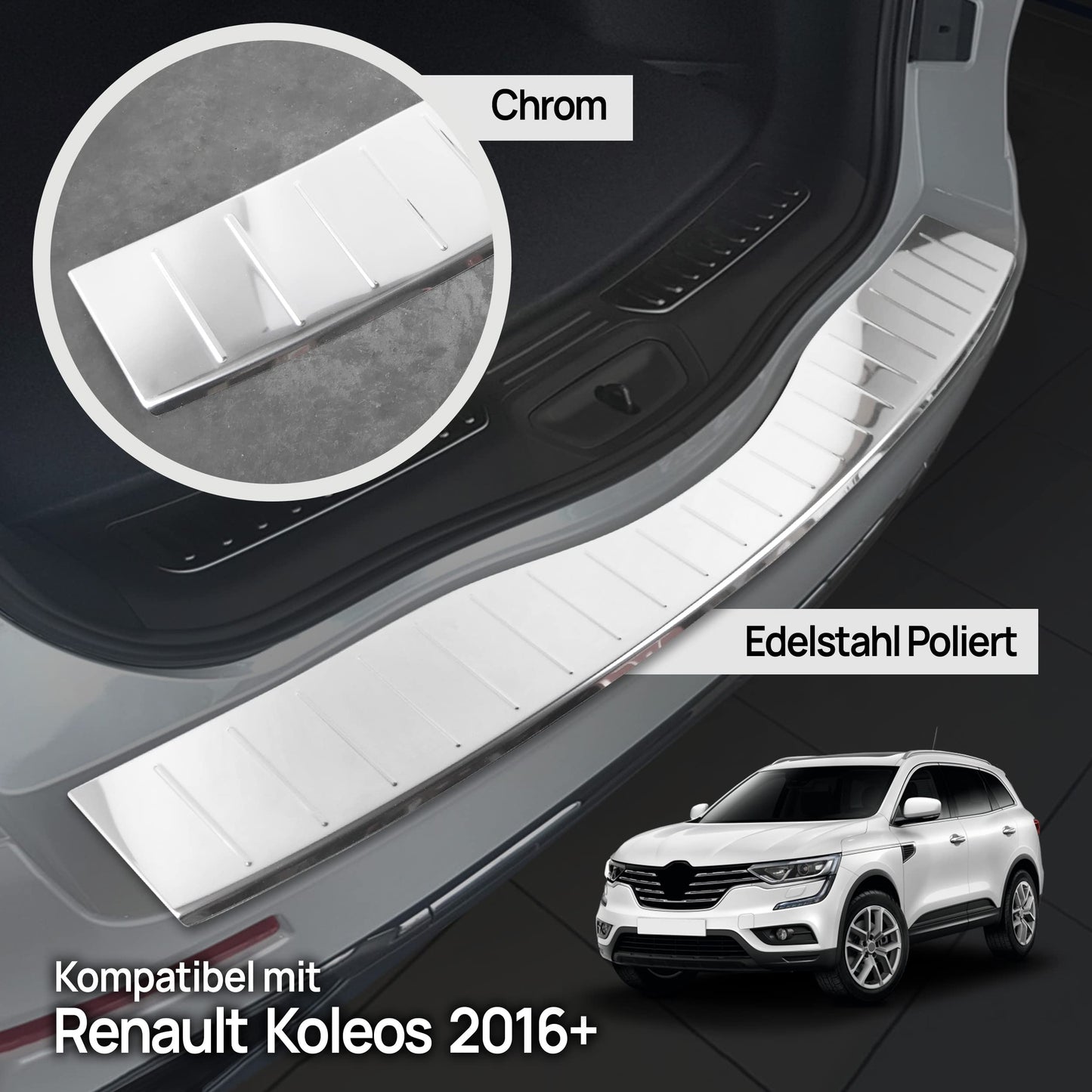 - ✅ [AUTOMODELL] Ladekantenschutz, Heckschutzleiste Kompatibel mit Renault Koleos 2016- ; Edelstahl Poliert / Chrom; Korrosionsfest; Montagebereit; Inklusive Reinigungstuch Für Die Stoßstange