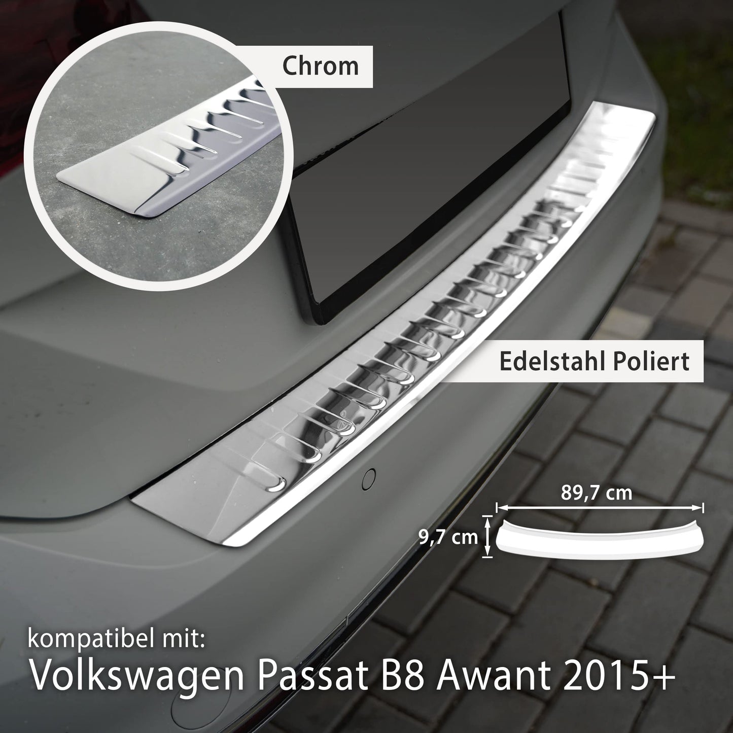 - ✅ [AUTOMODELL] Ladekantenschutz, Heckschutzleiste Kompatibel mit VOLKSWAGEN PASSAT B8 KOMBI 2015-2023 ; Edelstahl Poliert / Chrom ; Korrosionsfest; Montagebereit; Inklusive Reinigungstuch Für Die Stoßstange; Hinweis: Nicht geeignet für Limousine-Version
