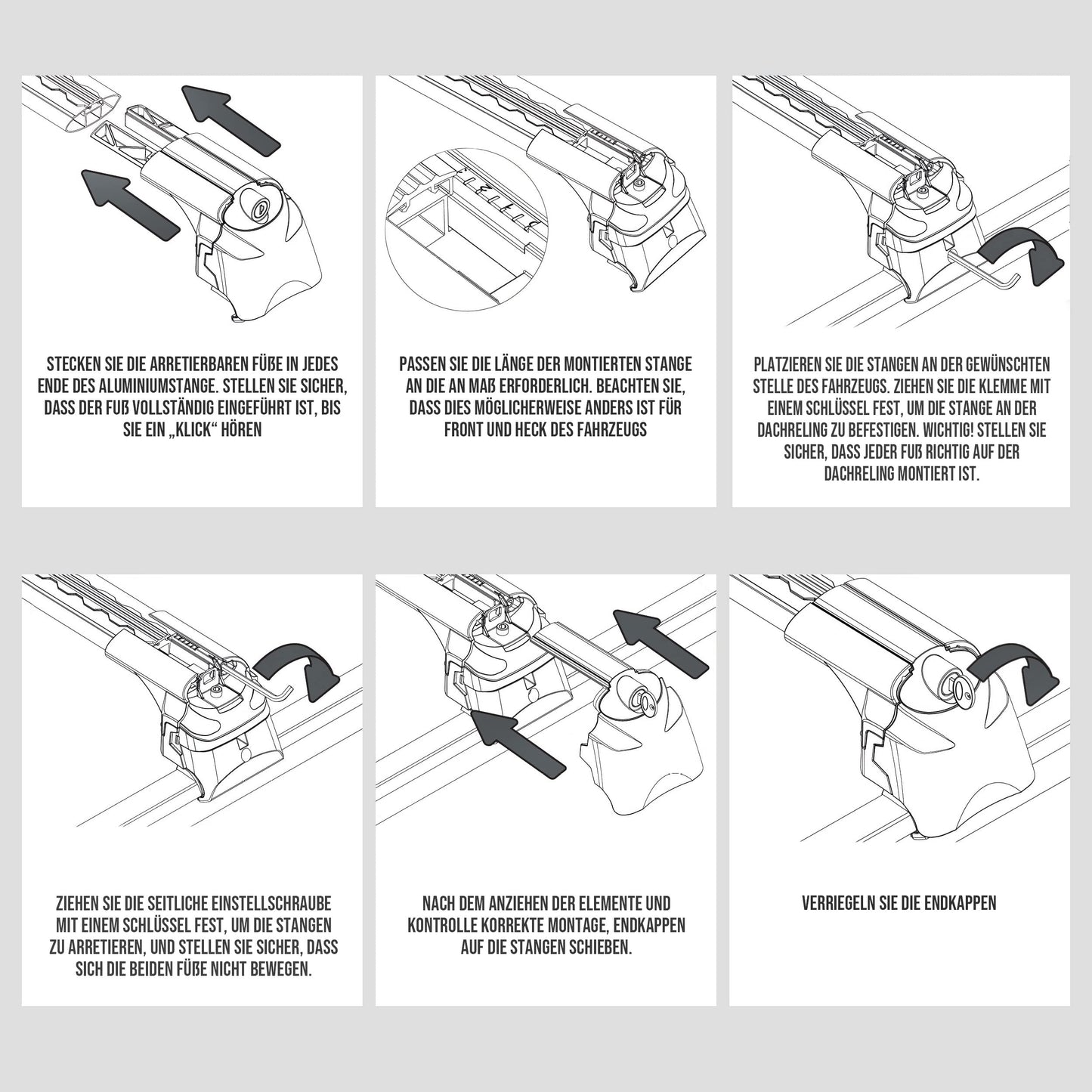 ➡️MONTAGE Verständliche Anleitung sorgt für einfache Montage und Demontage; Das Seit beinhaltet zwei Querstangen mit Schloß, Schlüssel, Klemmen und andere Montageteilen; Der Dachgepäckträger ist mit Anti-Diebstahl-Schutz versehen